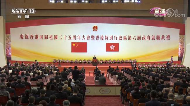 Голова КНР Сі Цзіньпін виступає на церемонії інавгурації шостого уряду САР Сянґан. У своїй промові він передав вітання всім жителям Сянґана, привітав Лі Цзячао, якого нещодавно призначили на посаду шостого глави виконавчої влади САР Сянґан, а також інших високих посадовців шостого уряду САР Сянґан і членів Виконавчої Ради. Сі Цзіньпін висловив подяку усім співвітчизникам і міжнародним друзям вдома і за кордоном, які підтримують концепцію "одна країна – дві системи" і підтримують процвітання та стабільність Сянґана.