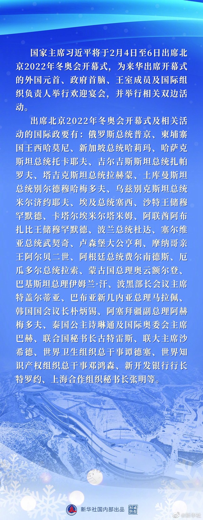 【Зимові Олімпійські ігри 2022】Сі Цзіньпін буде присутній на церемонії відкриття зимової Олімпіади у Пекіні