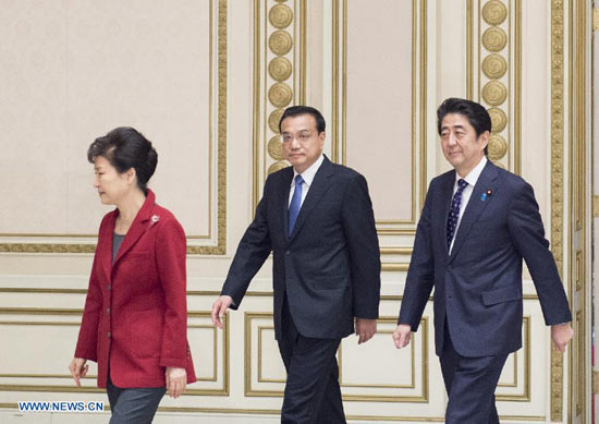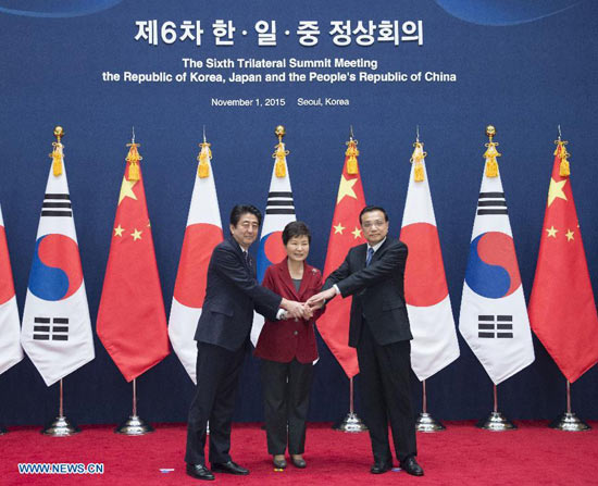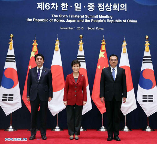 1 листопада у Сеулі відбулася 6-а зустріч лідерів Китаю, Японії та Республіки Корея. У зустрічі взяли участь прем'єр Держради КНР Лі Кецян, президент РК Пак Кин Хе і прем'єр-міністр Японії Сіндзо Абе. Зустріч відбулася під головуванням Пак Кин Хе. Лідери трьох країн підсумували та розглянули перспективи співпраці Китаю, Японії і РК, обмінялися думками стосовно регіональних та міжнародних питань.