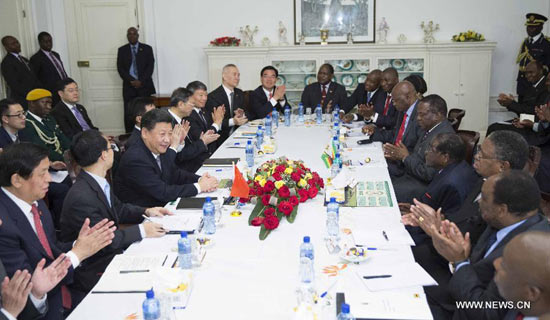 Голова КНР Сі Цзіньпін провів переговори з президентом Зімбабве Робертом Мугабе. Керівники країн високо оцінили традиційну дружбу між Китаєм і Зімбабве, спільно окреслили напрями майбутнього розвитку двосторонніх відносин і досягли домовленостей щодо поглиблення діяльного співробітництва.